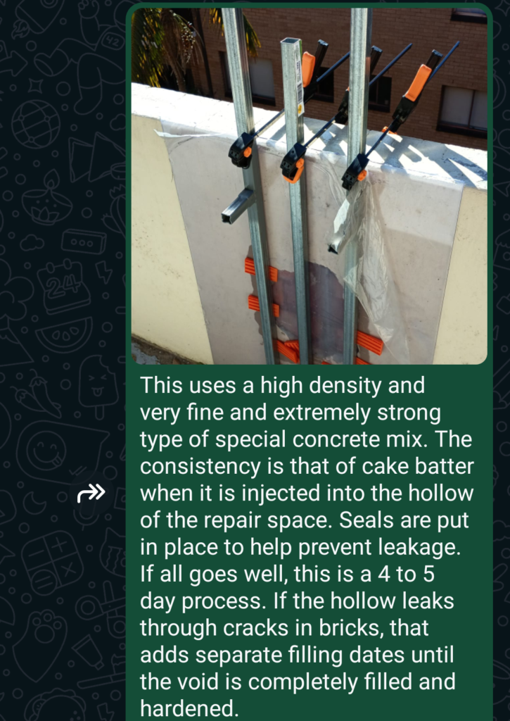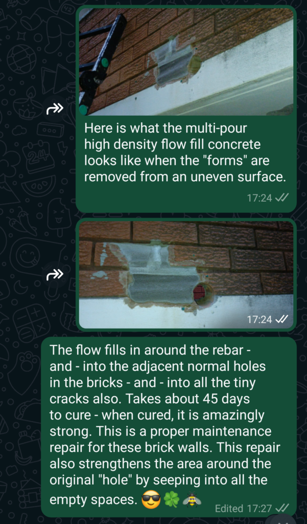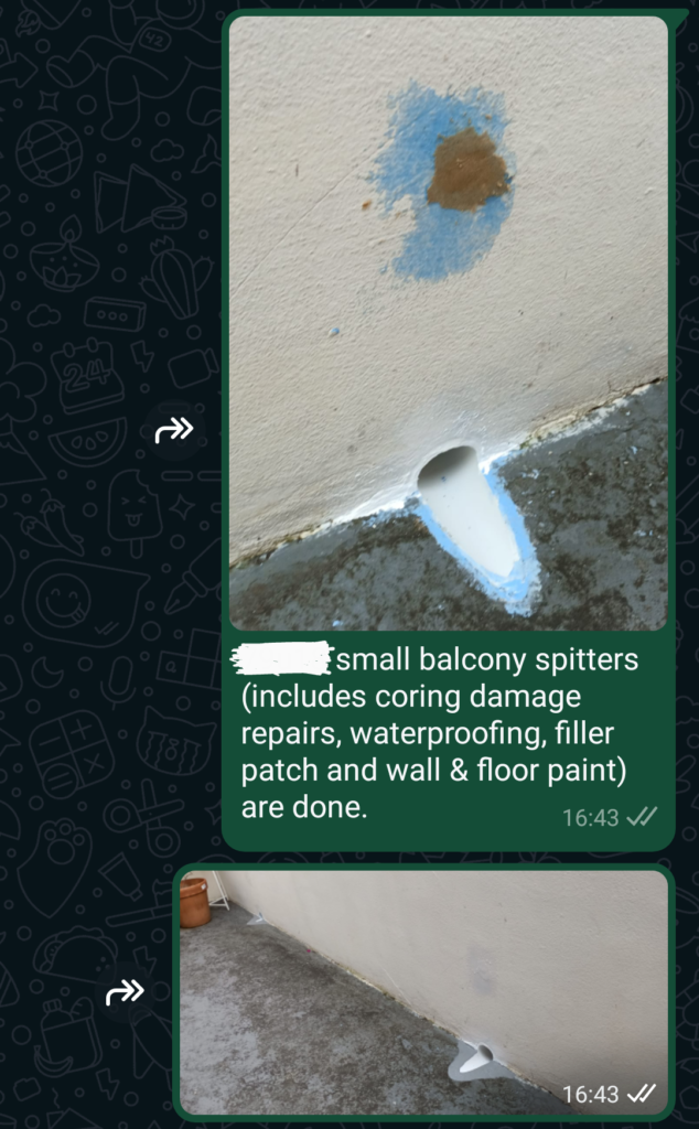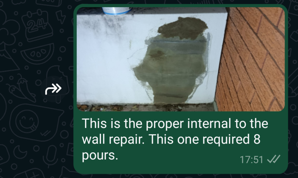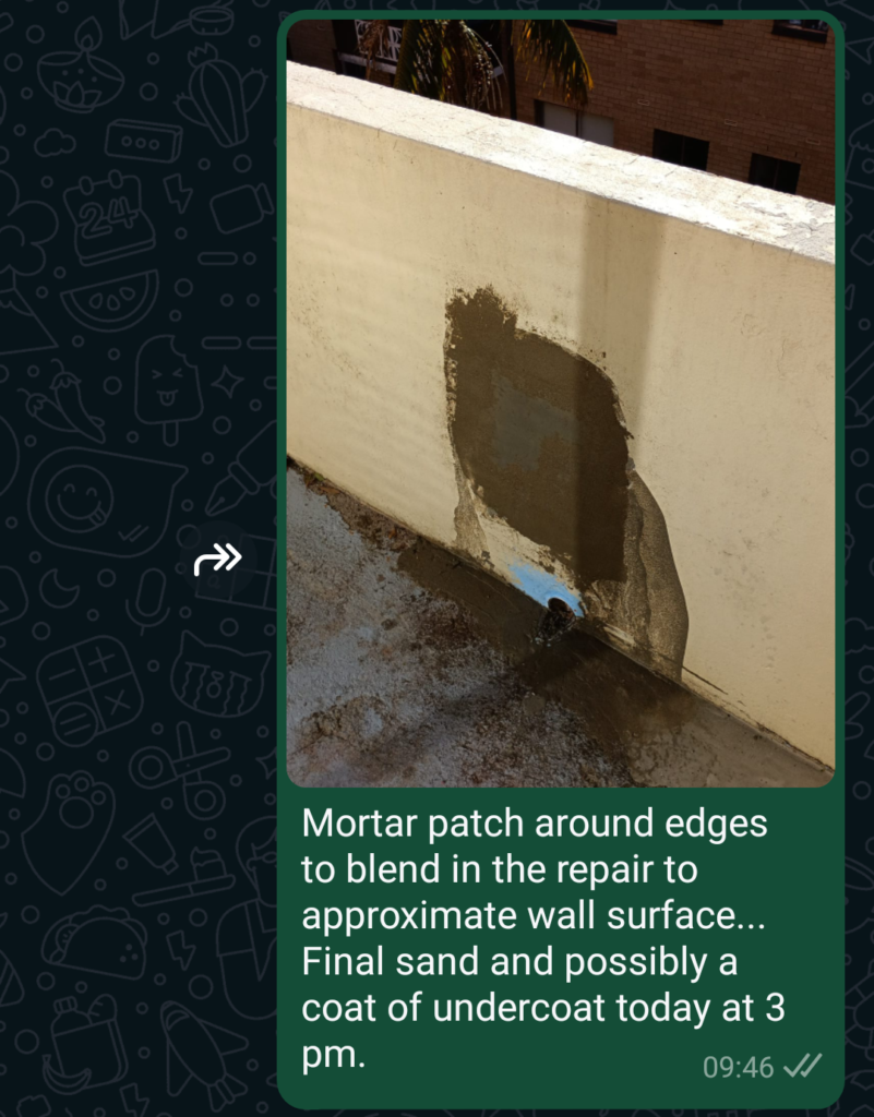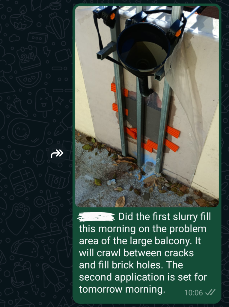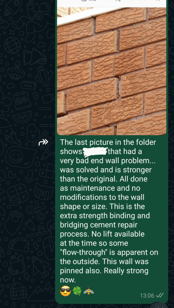 Much of the maintenance work done on the 72 balconies on this property cannot be seen from the outside of a balcony. Most repairs are done from the inside to minimise damage to the outer brickwork.