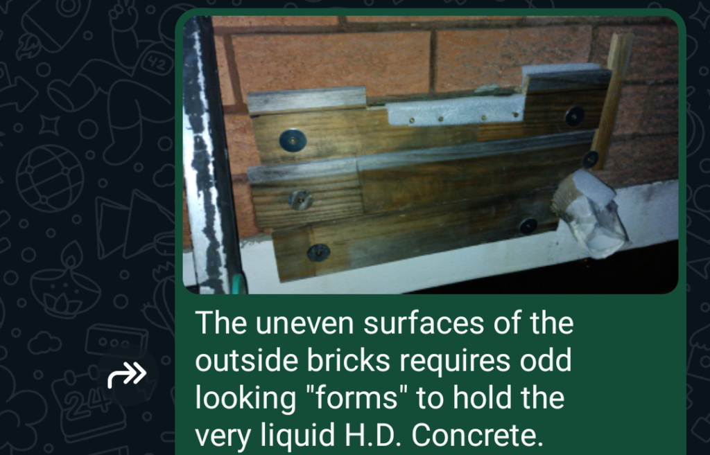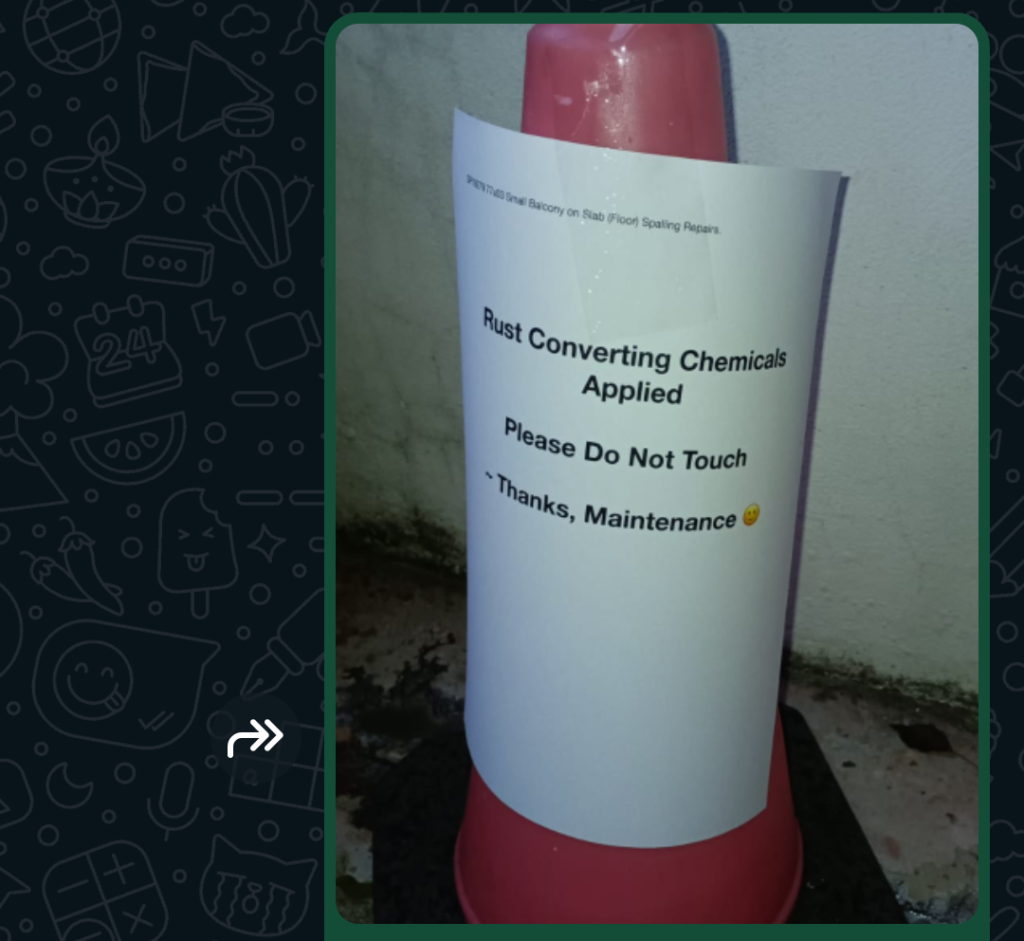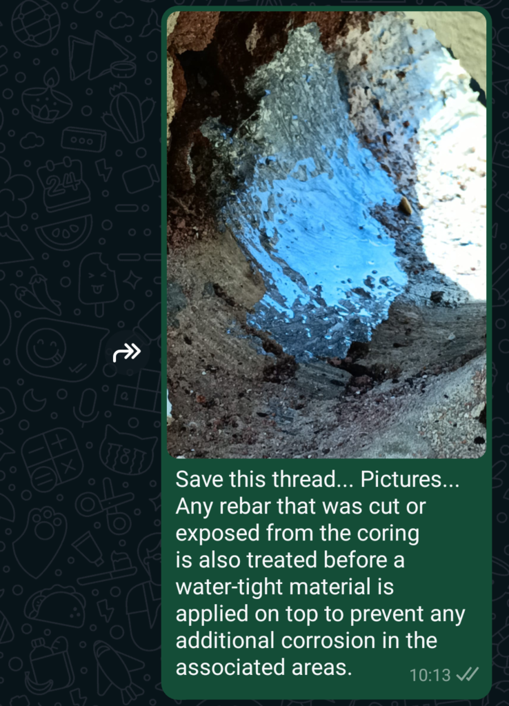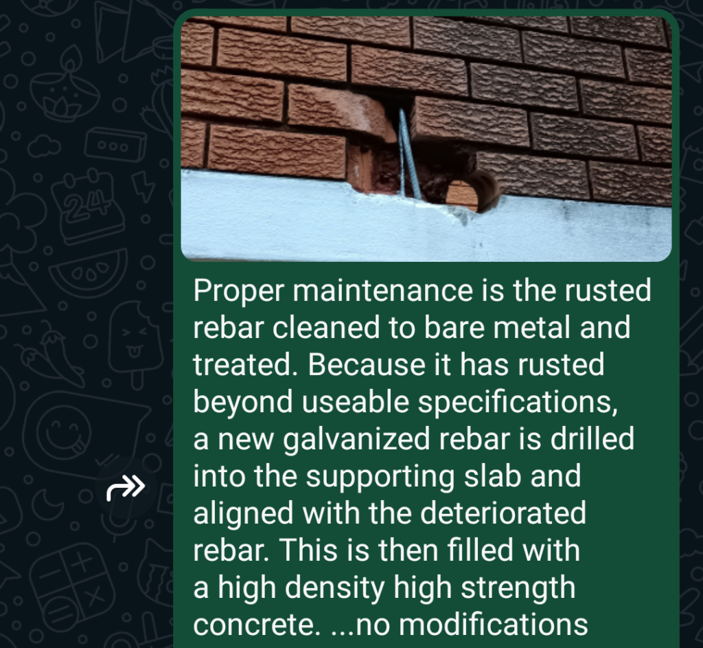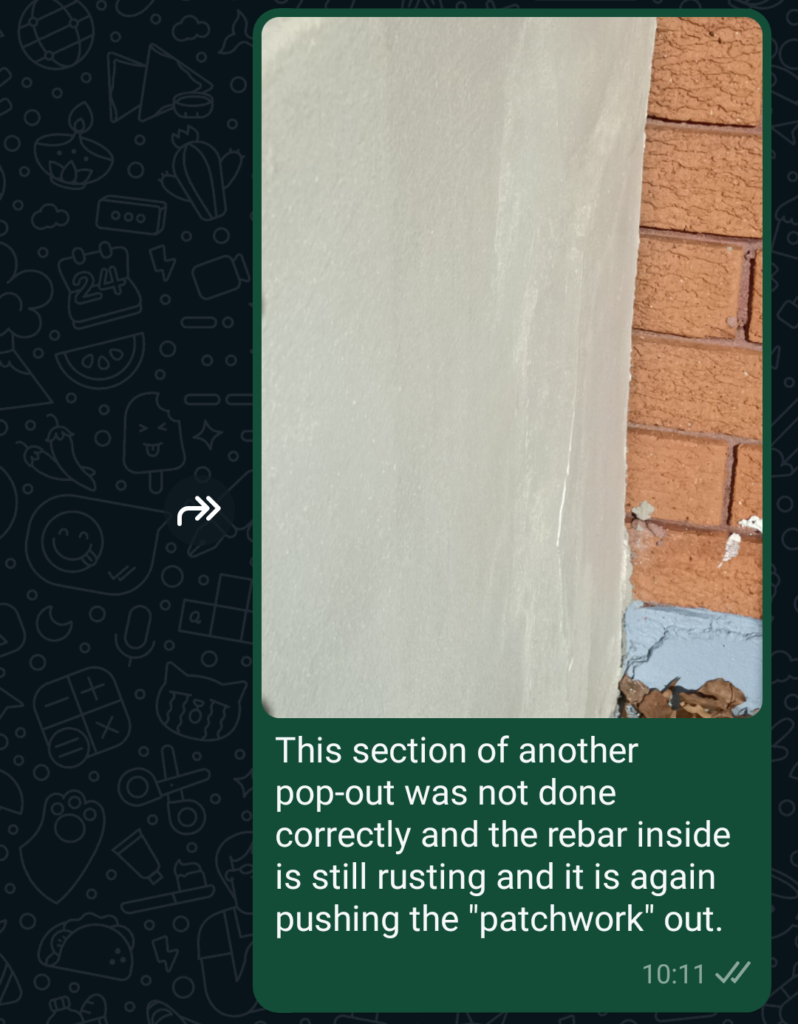 Much of the maintenance work done on the 72 balconies on this property cannot be seen from the outside of a balcony. Most repairs are done from the inside to minimise damage to the outer brickwork.